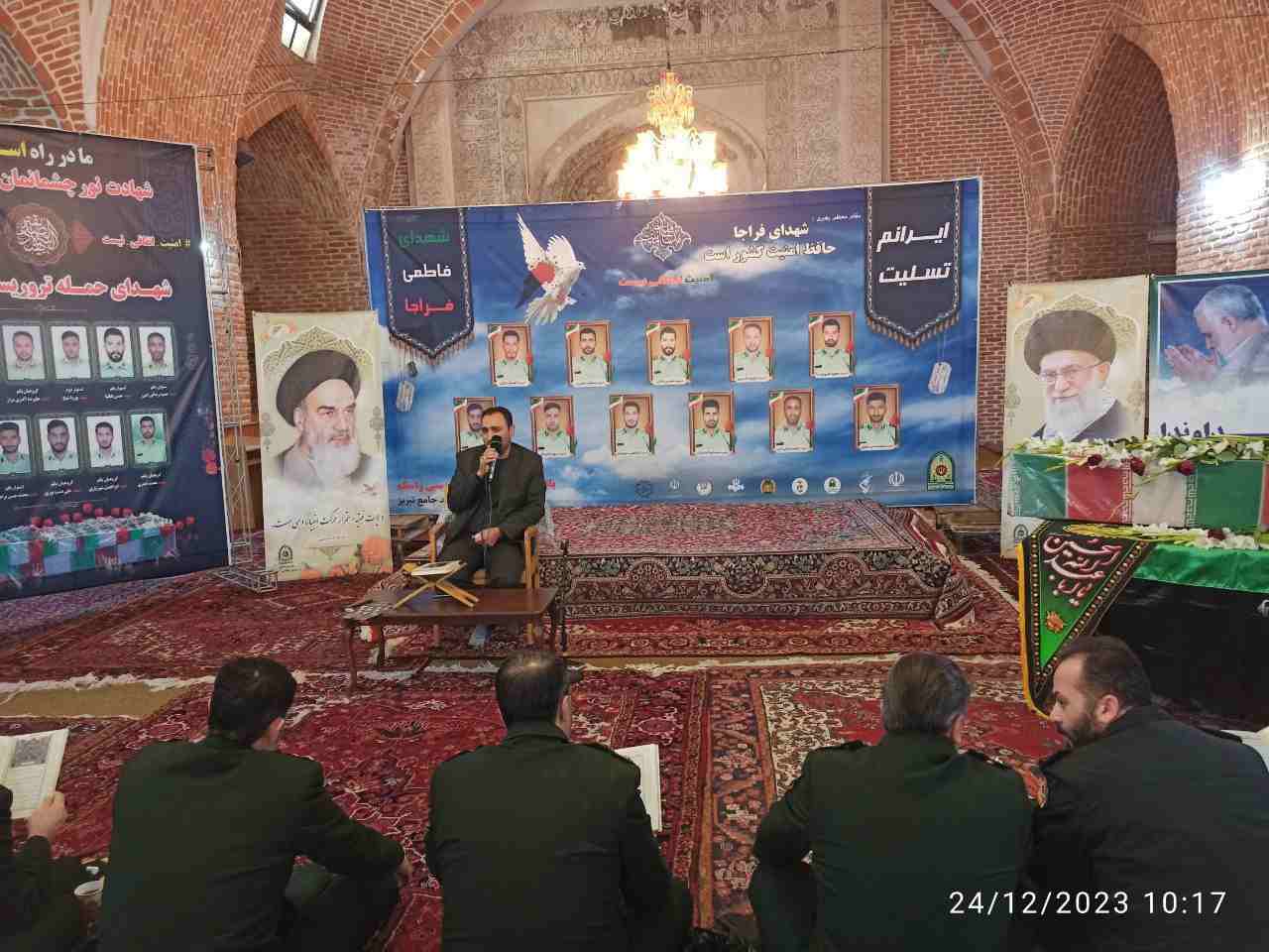 به گزارش آدینه پرس ، مراسم بزرگداشت شهدای حادثه تروریستی راسک با حضور سردار علی محمدی فرماندار انتظامی استان، مردم شهید پرور، و جمعی از مسئولین لشکری و کشوری در مسجد جامع تبریزبرگزار شد. ناصر غلامی هوجقان