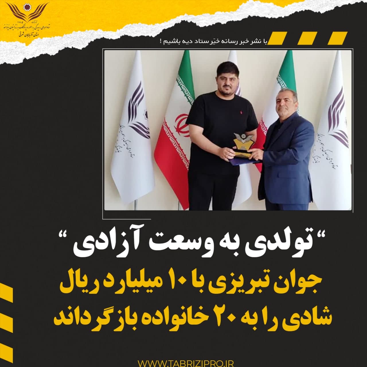 جوان تبریزی با ۱۰ میلیارد ریال، شادی را به ۲۰ خانواده بازگرداند