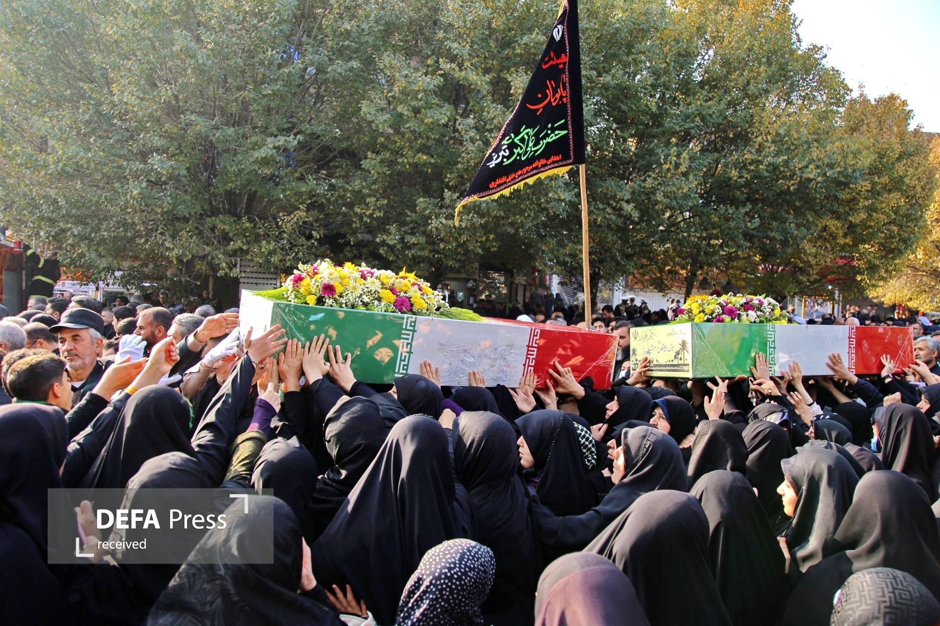 تجلی عشق به شهدا در تبریز؛ بدرقه باشکوه چهار آلاله دفاع مقدس