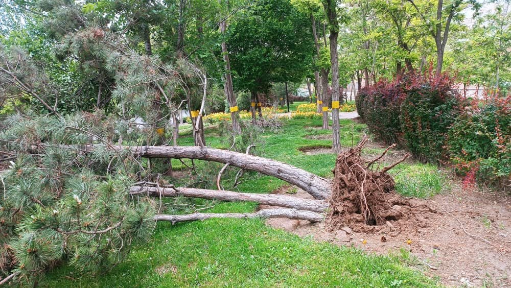 افتادن چند اصله درخت در مجموعه ائلگولی به دلیل تندباد شدید