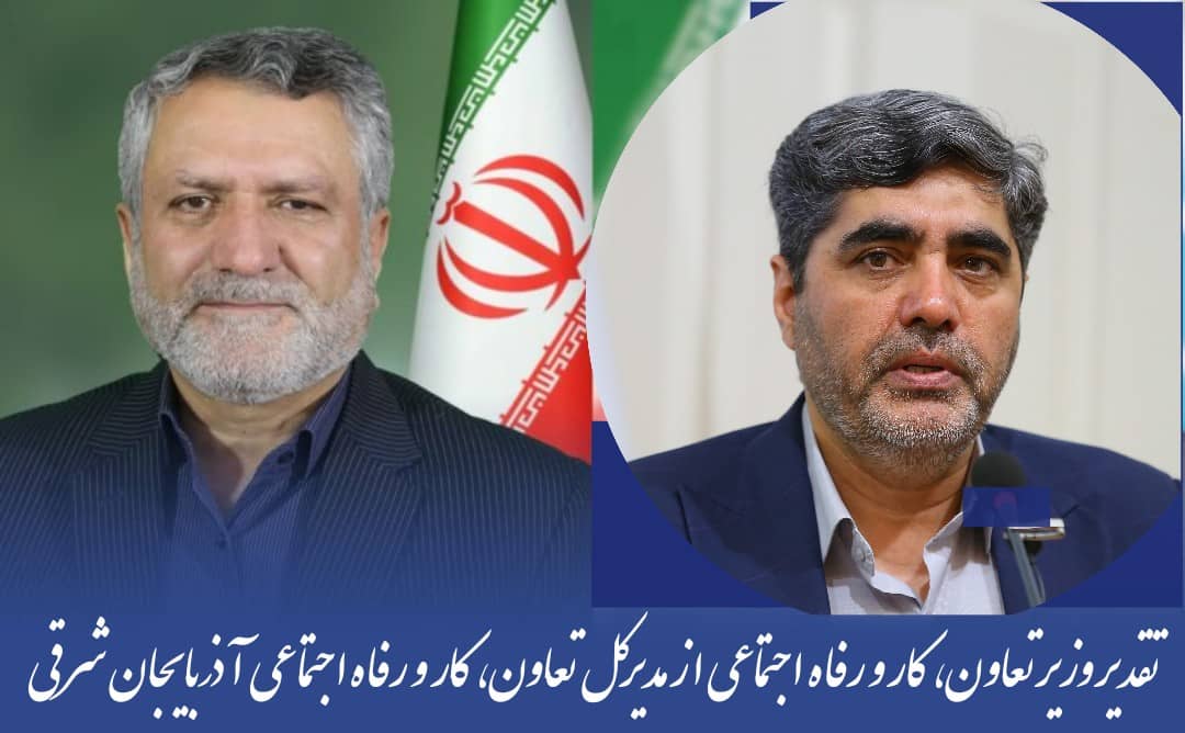 تقدیر وزیر تعاون، کار و رفاه اجتماعی از مدیرکل تعاون، کار و رفاه اجتماعی استان آذربایجان شرقی
