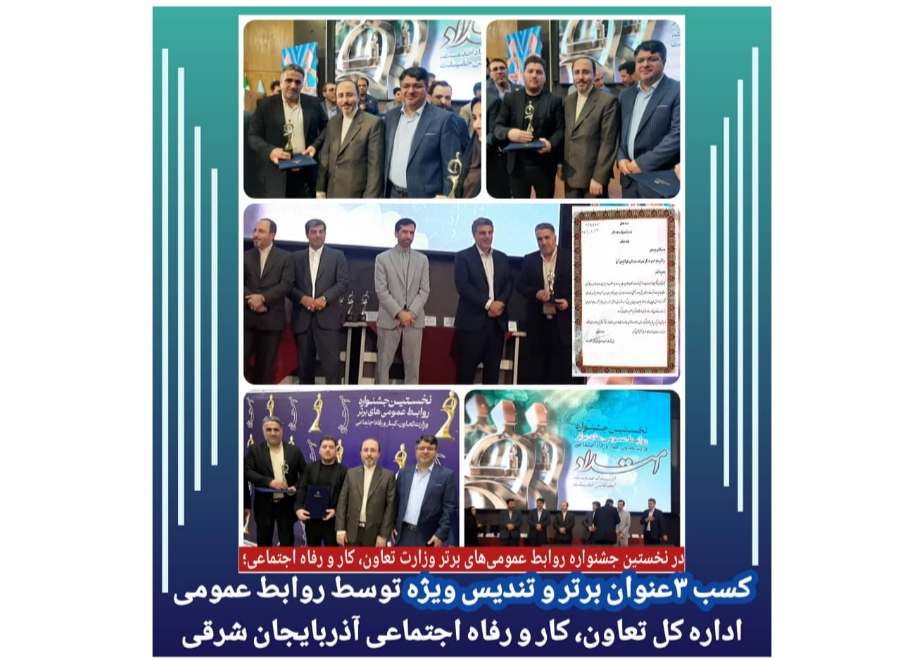 کسب ۳عنوان برتر و تندیس ویژه توسط روابط عمومی اداره کل تعاون کار و رفاه اجتماعی آذربایجان شرقی