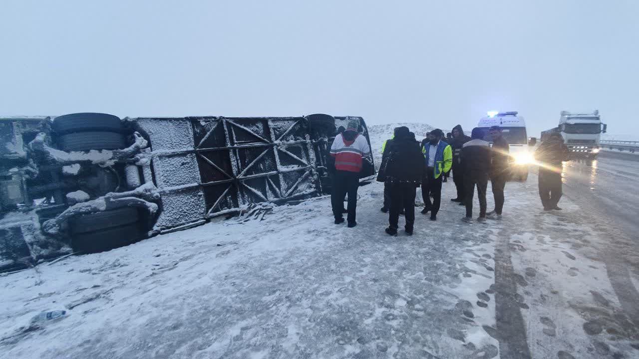 برخورد یک دستگاه اتوبوس با کمپرسی در آزادراه تبریز – زنجان