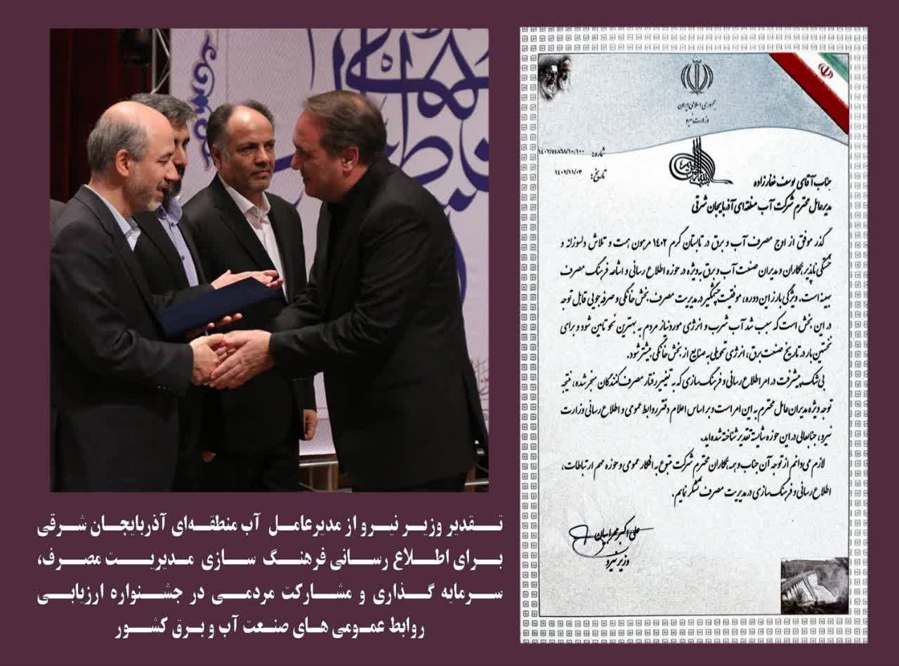 تقدیر وزیر نیرو از آب منطقهای آذربایجان شرقی